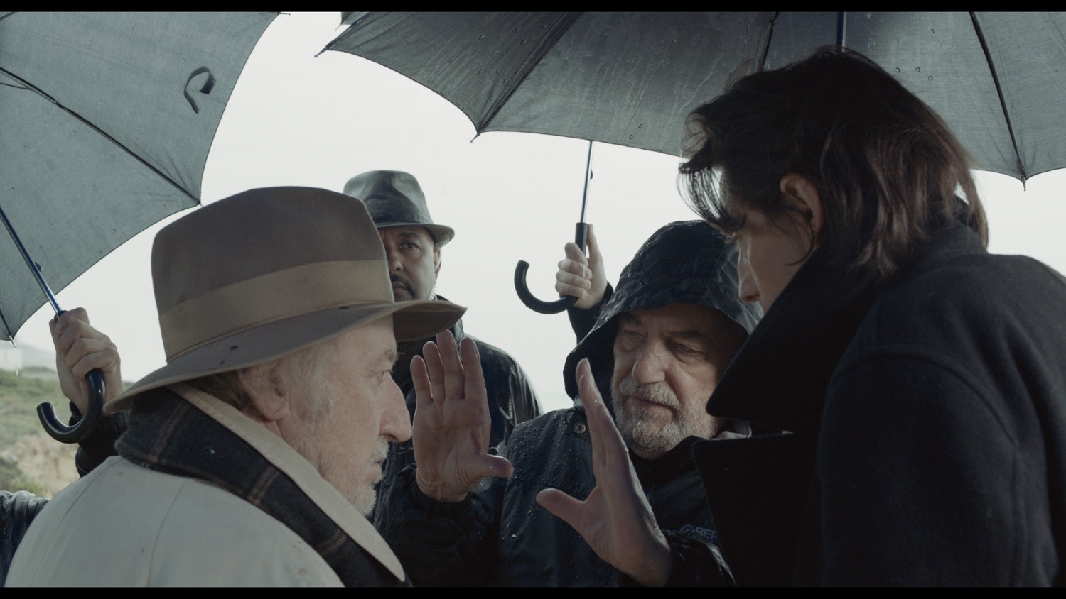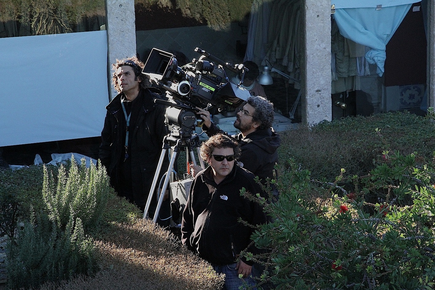 Mathieu Almaric , Melvile Poupaud , Miguel Borges and João Arrais relax between takes...